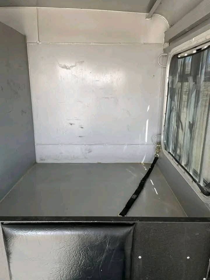 The rhino-lined interior is brilliant. Rhino liner protects walls and floors from kicks, scrapes, and daily wear. It’s the same tough coating used on truck beds, proven to handle abuse. The wood floor underneath is in like-new condition because the rhino liner protected it. Easy cleanup too, just hose it out.