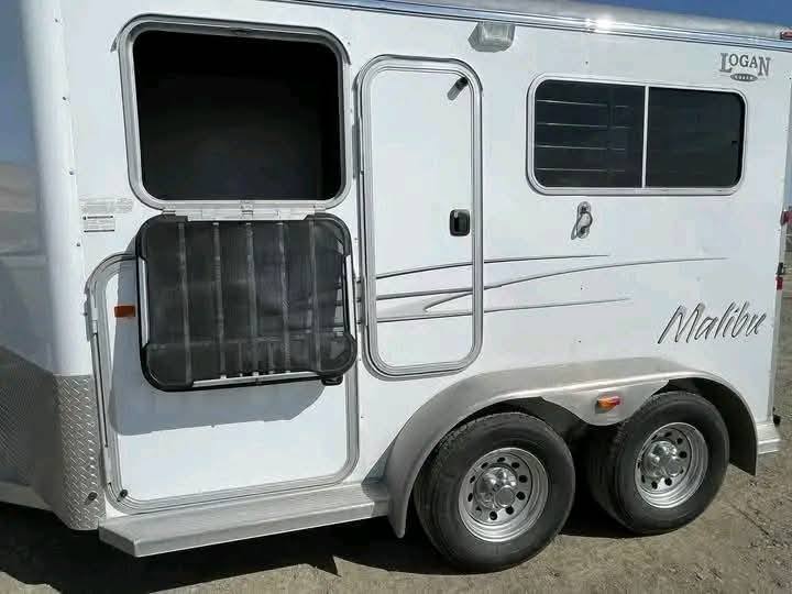 Logan coach horse trailers are built tough with smart features that last. This 2008 Malibu model shows exactly what makes these trailers popular. The steel galvanized frame provides serious strength while the aluminum skin keeps weight down and prevents rust. At just 3000 lbs empty, you can tow this with a half-ton truck without straining your vehicle.
