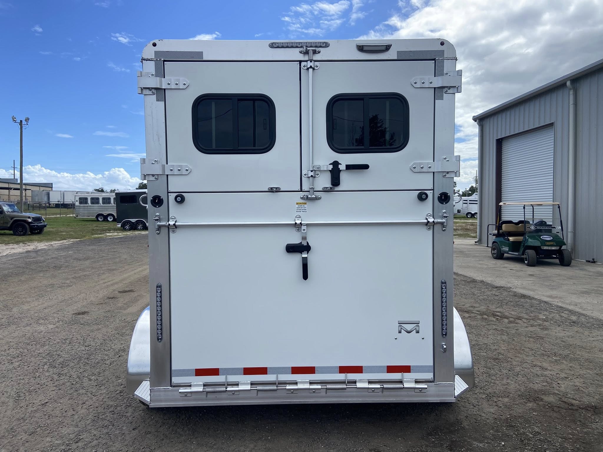 Brand new 2026 Bar-M bumper pull horse trailer built for warmbloods. Features 7’6″ interior height, 6’9″ width, front tack room with saddle racks and bridle hooks. Includes removable divider, rubber flooring, sliding bus windows, dual escape doors, rear ramp with dutch doors, and aluminum wheels. Financing available. Priced at $20,999 with nationwide shipping.